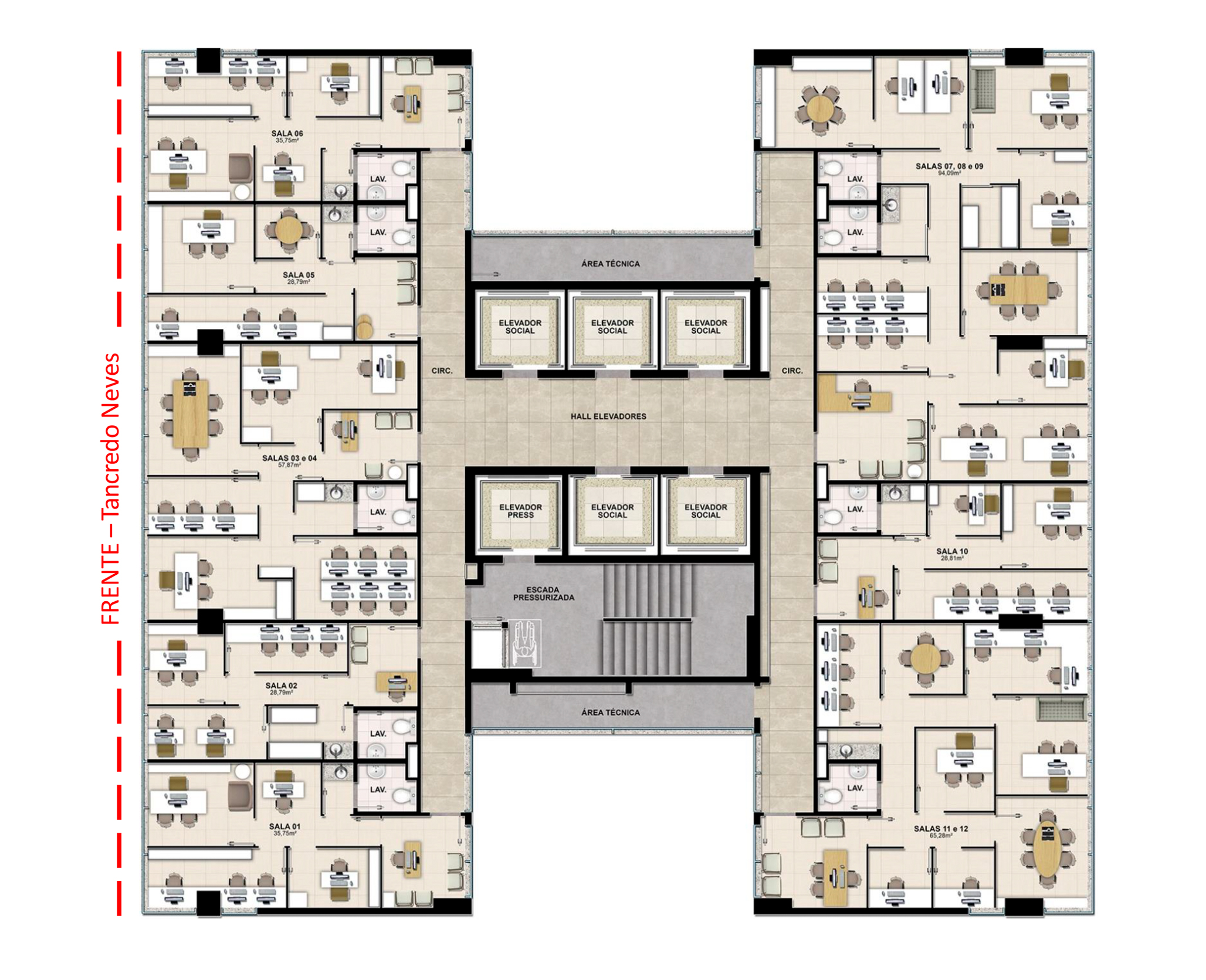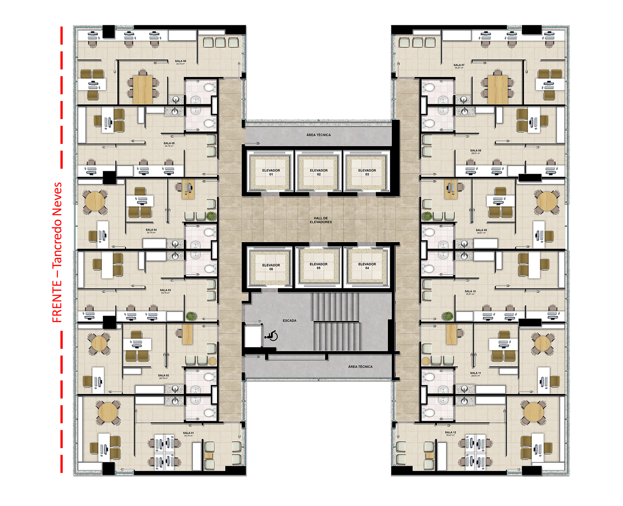 Ficha TécnicaO empreendimento oferece salas individuais, salas conjugadas, lojas, espaços multiuso de 500m2 a 1,000m2, boxes de serviços, área de alimentação e vagas de estacionamento. Torre única com salas de 28,79m2 a 36,47m2 e lojas de 13,20m2 a 44,04m2. UM MÉDICO E EMPRESARIAL COM INFRAESTRUTURA COMPLETA.